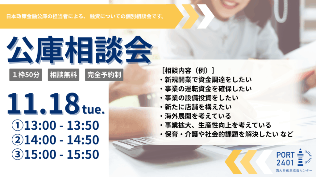 11/18(火)[個別相談会]日本政策金融公庫に融資相談ができます!