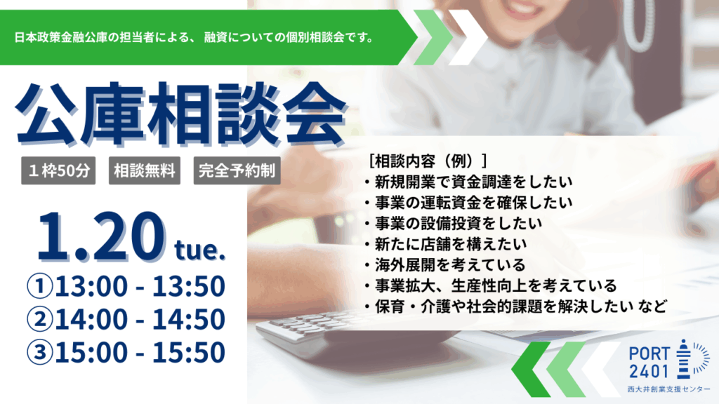 1/20(火)[個別相談会]日本政策金融公庫に融資相談ができます!