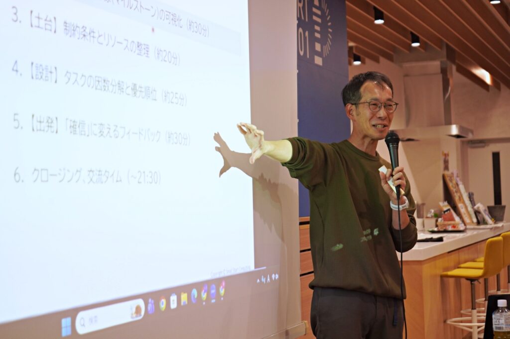 今回のイベントには、西大井創業支援センターのインキュベーションマネージャーで、中小企業診断士の渋屋隆一が登壇。きちんと行動に移せる事業計画の立て方について、講義とワークを組み合わせて解説しました。